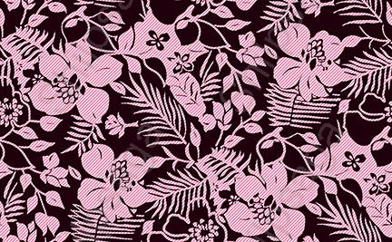 Seamless pattern with pink flowers and leaves on a black background. This floral pattern could be used for wallpaper, fabric for clothing or upholstery, or other surfaces.