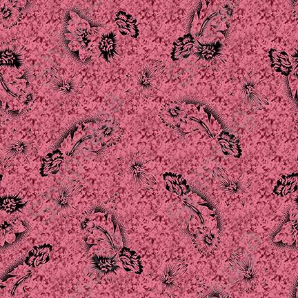 Seamless pattern with black flowers on a pink background. The flowers have a wavy design with five petals.This pattern could be used as a background for a website or blog post, or on fabric for clothing or upholstery.