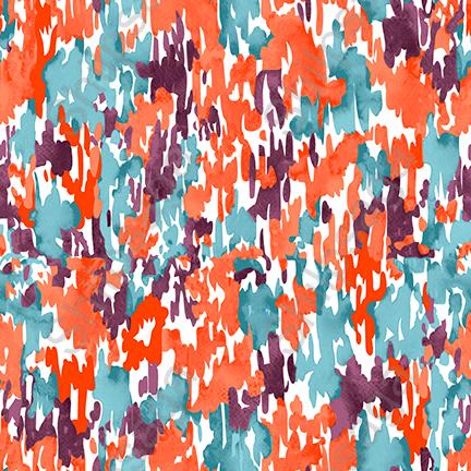 Seamless pattern with colorful pattern of brushstrokes on a white background. The brushstrokes are irregular and appear to be painted in various shades of pink, orange, yellow, and blue. This design is a seamless pattern, which means it can be tiled together to create a larger design without any visible seams. This type of pattern could be used for fabrics, wallpapers, backgrounds for websites or blogs, or any other application where a colorful and eye-catching design is desired.