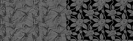 Seamless pattern with gray and black pattern with flowers and leaves on a black background. The design creates a damask-like effect. This elegant pattern could be used for a variety of purposes, such as wallpaper, fabric, or home decor accents.