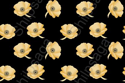 Seamless pattern of yellow flowers with black centers on a black background. This bold and graphic floral design is both modern and striking.This design is both elegant and versatile. It could be used for wallpaper, fabric, or other surfaces that need a beautiful floral pattern.
