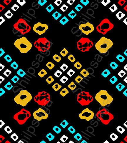 Seamless pattern of colorful diamonds in various orientations on a black background. This geometric pattern is ideal for fabrics, wallpaper, and other surface designs.