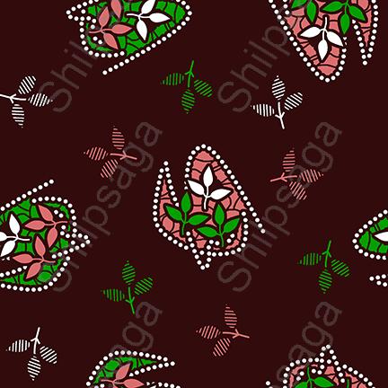 Seamless pattern of pink and green flowers and leaves scattered on a black background. This colorful and floral pattern is ideal for fabrics, wallpaper, and other surface designs.
