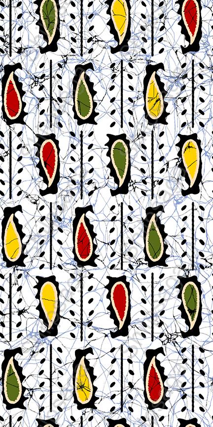 Seamless pattern of yellow, green, and red leaves on a white background. The pattern creates a bright and colorful look