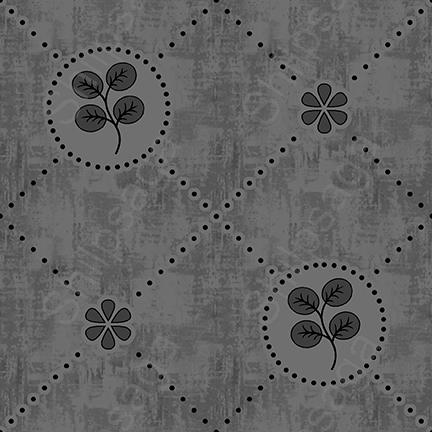 Seamless pattern with leaves and dots on a gray background The leaves and dots are scattered throughout the pattern in a variety of shapes and sizes This type of pattern can be used for fabrics, wallpapers, and other surfaces that require a continuous design.