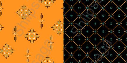 Seamless pattern with orange and black seamless patterns. One pattern features stripes and the other features hexagons. These seamless patterns can be used for a variety of purposes, such as fabrics, wallpapers, and website backgrounds.