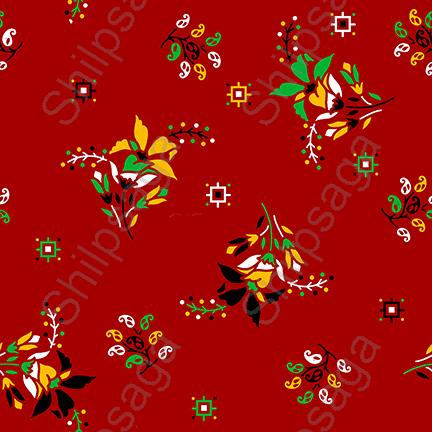 This design features a digital art deco geometric pattern in shades of orange, yellow, and teal on a dark blue background. This bold and geometric pattern is ideal for fabrics, wallpaper, and other art deco inspired designs.